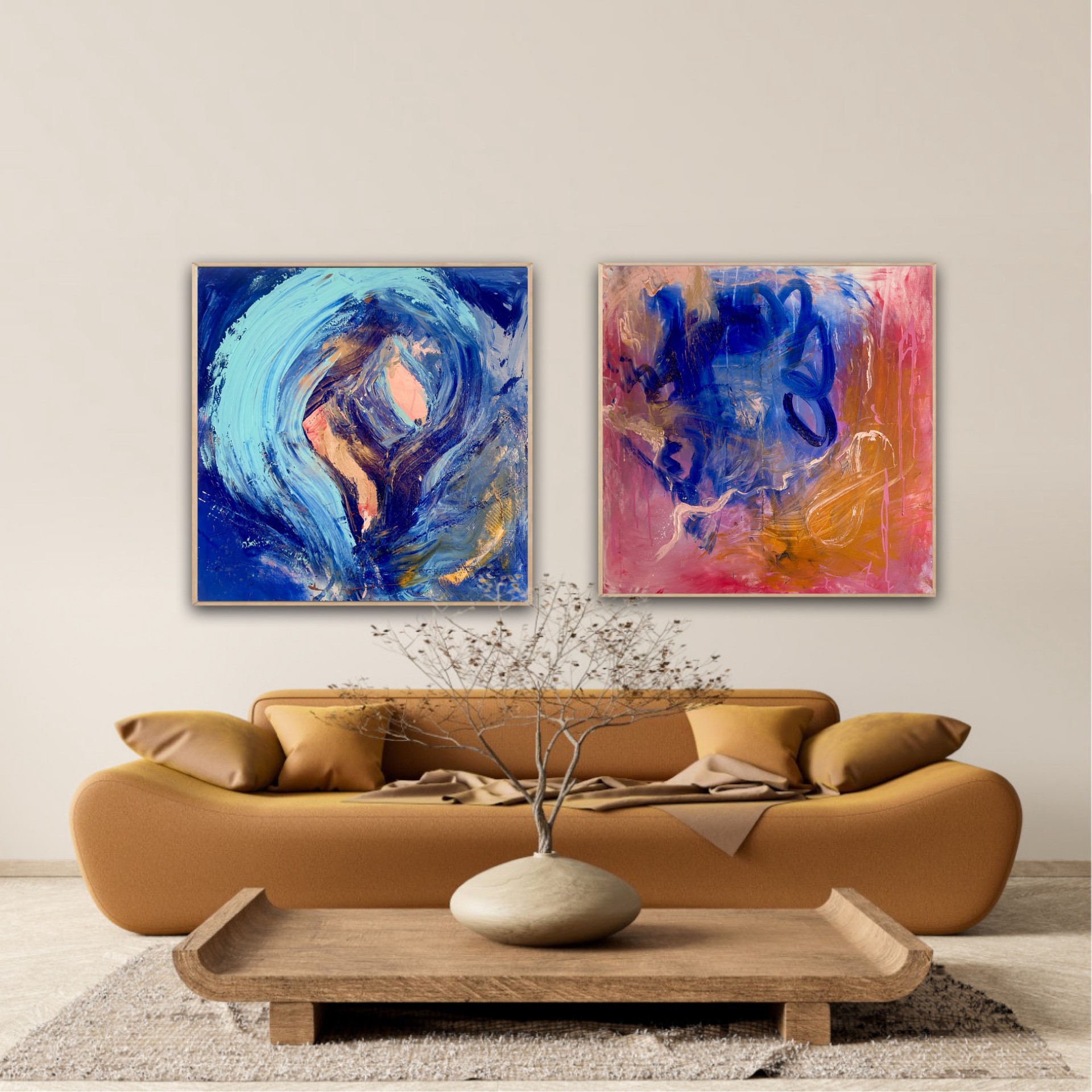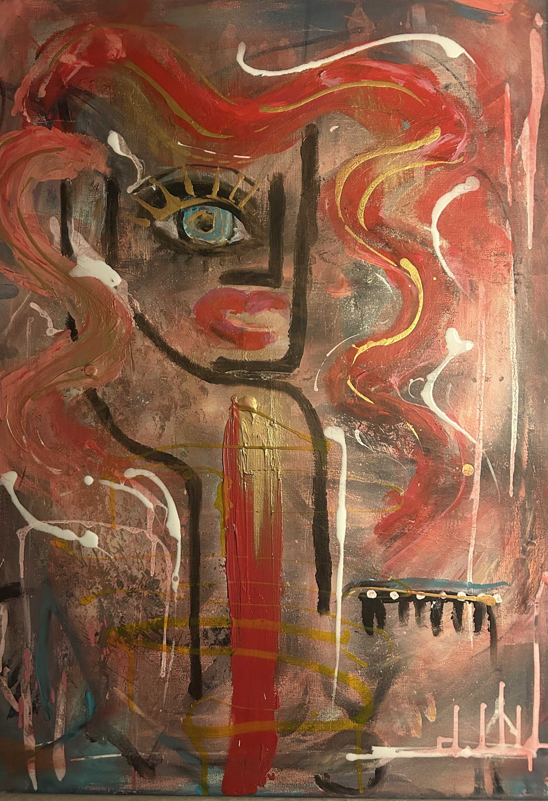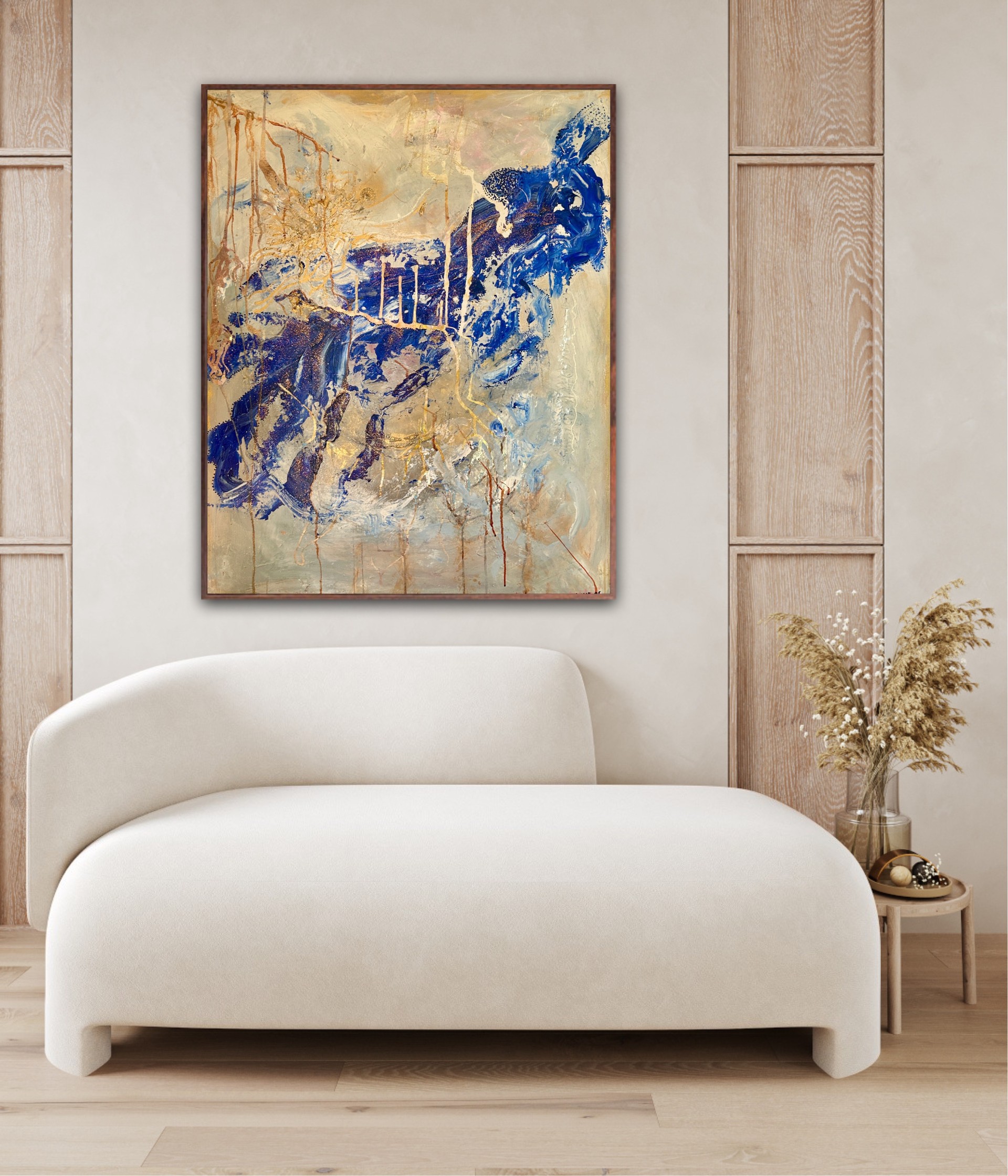 Mitt uttryck är dynamiskt och jag målar oftast i stora format i härliga färger. Akryl och inslag av olika medium skapar en livfull känsla.